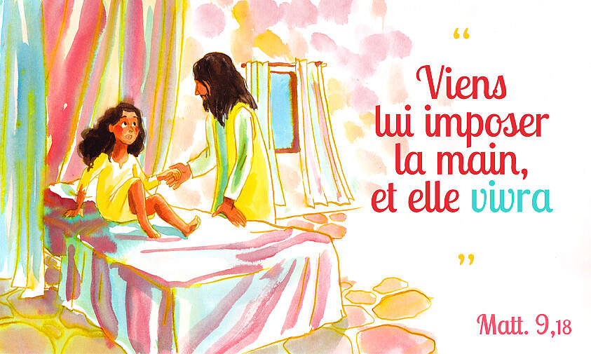 sanglots, et il lui répond : « Ne pleure pas. Aie foi. Ta fille va vivre. Allons auprès d’elle. Lève-toi ! Allons ! »